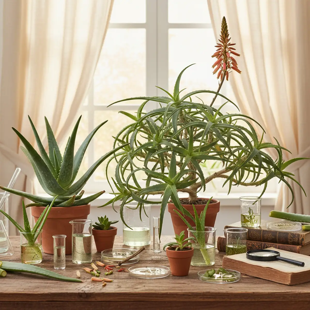 Si vous vous interessez aux preparations a haute concentration en principes actifs, l’arborescens merite attention, mais gardez a l’esprit que la quantite de gel par feuille est moindre. Pour decouvrir les autres varietes du genre Aloe et mieux comprendre leurs specificites, consultez notre guide des varietes d’aloe.