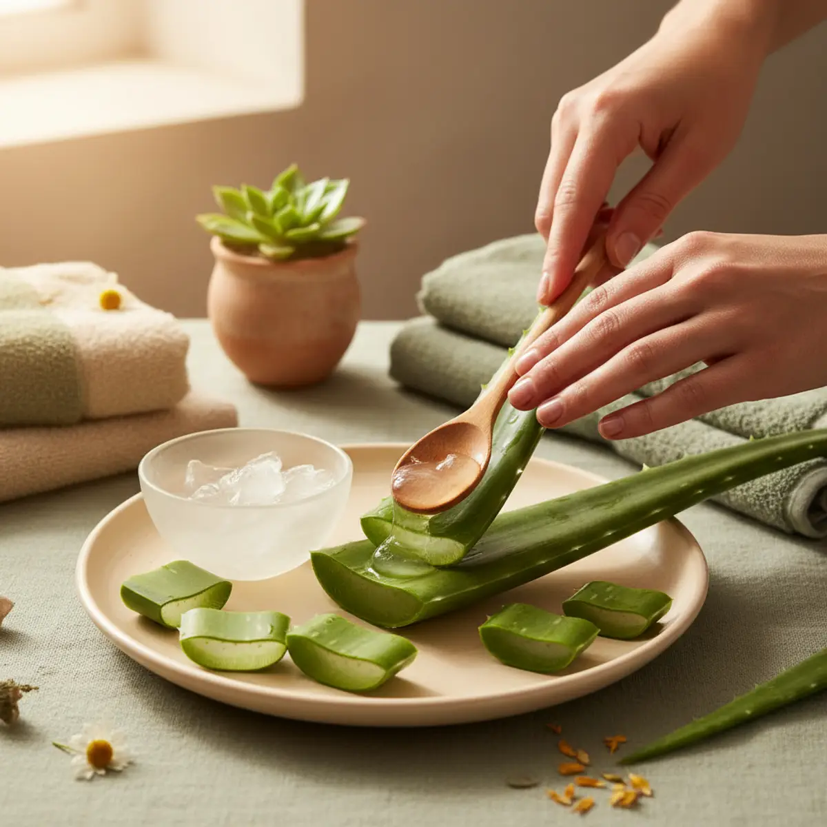 En revanche, certaines etudes suggerent que les antioxydants du gel peuvent apporter une legere photoprotection complementaire. L’idee est d’utiliser l’aloe vera comme soin hydratant de base, puis d’appliquer votre creme solaire par-dessus.